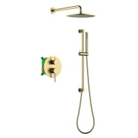 Душевая система встроенная с термостатом трёхрычажный Selene (матовое золото), излив плоский 150 мм,