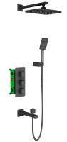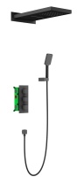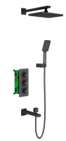 Душевая система встроенная с термостатом трёхрычажный, Petruma, (чёрный), излив плоский, прямоугольн