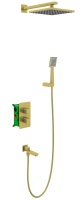 Душевая система встроенная с термостатом двухрычажный, Petruma, (золотой матовый), излив плоский, пр