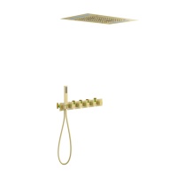 Душевая система встроенная с термостатом трёхрычажный Petruma (матовое золото), без излива, прямоуго