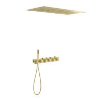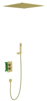 Душевая система встроенная с термостатом двухрычажный, Petruma, (золотой матовый), излив плоский, кв