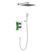 Душевая система встроенная с термостатом двухрычажный, Petruma, (хром), излив плоский, прямоугольная