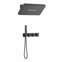 Душевая система встроенная с термостатом трёхрычажный Petruma (чёрный), без излива, прямоугольная ле