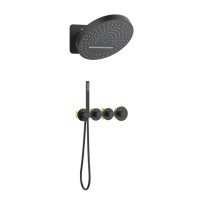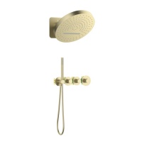 Душевая система встроенная с термостатом двухрычажный Saona (матовое золото), без излива, круглая ле