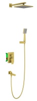 Душевая система встроенная с термостатом трёхрычажный Selene (матовое золото), без излива, квадратна