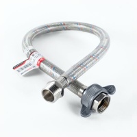 Гибкий рукав для системы водоснабжения «гайка-штуцер» выполнен из высококачественной нетоксичной резины, а также усилен с внешней стороны нитями из нержавейки. С одной стороны изделия установлена латунная гайка с внутренней резьбой, а с другой – штуцер с внешней резьбой такого же размера. Армирование защищает шланг от перегибов и механических повреждений. Длина может варьироваться от 30 см до 5 метров. Предназначена фурнитура для соединения с водопроводом смесителей, кранов, стиральных и посудомоечных машин.
