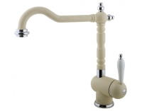 Модели выполнены в следующих цветах: антик (черный), хром (серебристый), белый матовый, жасмин (белый), сэнди (песчаный), шампань (золотистый). Все представленные варианты отлично сочетаются с необычной формой смесителя. Модели оснащены однорычажным управлением и устанавливаются на кухне для мойки рук и посуды.