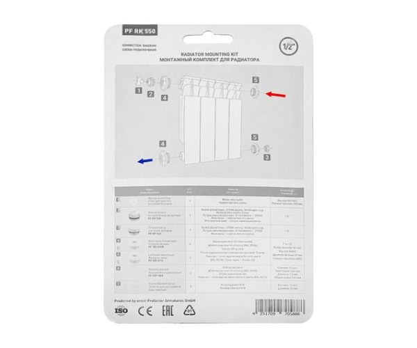 Комплект для монтажа радиатора предназначен для установки любых типов алюминиевых и биметаллических радиаторов с присоединительной внутренней резьбой верхнего и нижнего коллекторов G1".