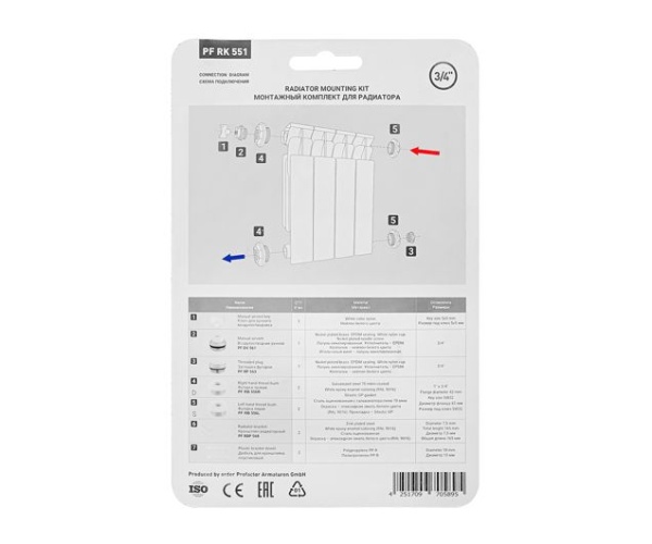 Комплект для монтажа радиатора предназначен для установки любых типов алюминиевых и биметаллических радиаторов с присоединительной внутренней резьбой верхнего и нижнего коллекторов G1".