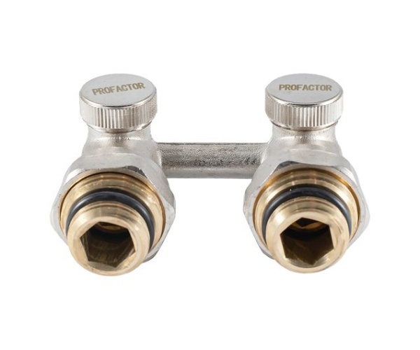 Узел подключения отопительных приборов PROFACTOR® используется в двухтрубных системах отопления для подключения радиаторов, имеющих нижние подсоединения с расстоянием между их центрами 50 мм.