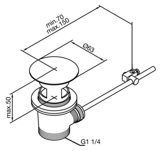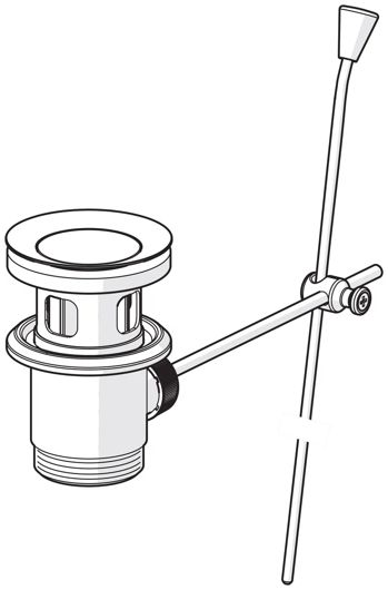 Заглушка клапана устанавливается в сливном отверстии чаши, обеспечивая герметичность раковины при заполнении водой. Монтажное соединение клапана и сливного патрубка сифона выполняется посредством винтового крепления. Для управления системой устанавливается тяга, соединенная с рычагом переходником.