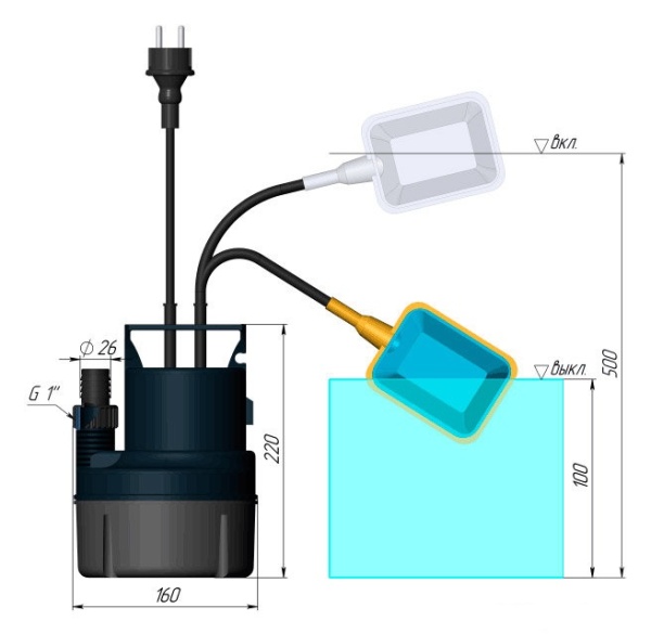 Насосы имеют герметичный корпус, могут работать частично или полностью погруженными в воду (глубина погружения в перекачиваемую жидкость до 5 метров).