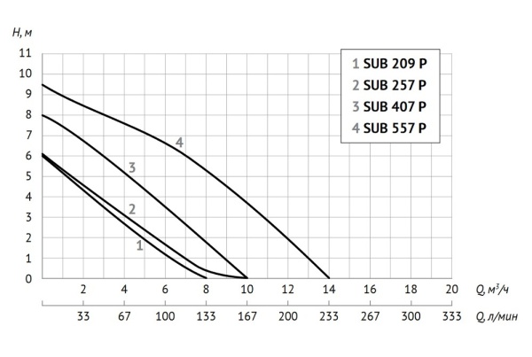 Дренажные насосы SUB 209 Р предназначены для отвода сточных дождевых вод, осушения контейнеров, откачивания воды из колодцев и шахт, осушения лодок или яхт, для перекачивания чистой или слегка загрязнённой воды (максимальный размер механических включений – 5 мм), воды, содержащей моющие средства, для откачивания воды из плавательных бассейнов, для распыления воды и для обеспечения циркуляции в течение ограниченного промежутка времени.