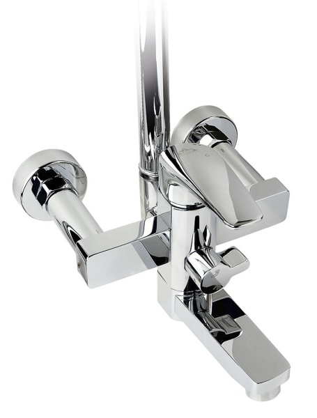 Душевая система Timo Beverly 1060 сочетает в себе функции тропического и ручного душа и прекрасно впишется в современный интерьер. Все элементы размещены снаружи, что позволяет устанавливать систему даже в готовом интерьере. Регулировка температуры и напора воды осуществляется джойстиком расположенном сверху на корпусе смесителя. Переключение потока воды на тропический душ и излив осуществляется поворотом ручки дивертора расположенном на корпусе смесителя. Для переключения потока воды с излива на ручной душ нужно повернуть излив к стене. Стойка тропического душа регулируется по высоте, держатель ручной лейки, также можно отрегулировать по высоте и наклону. Сложностей монтажа не возникает при установке душевой системы опытным сантехником. Внимательно изучите инструкцию по монтажу и эксплуатации.