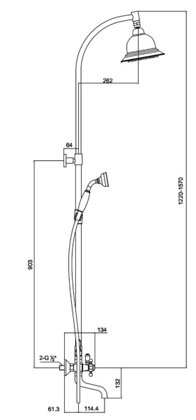 Душевая система двухвент., крест-керамика, Nelson, (антик), излив плоский, круглая лейка