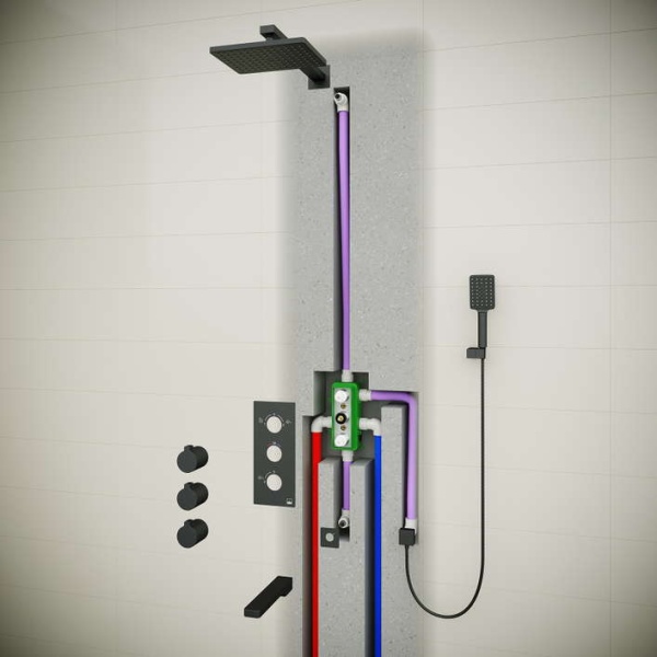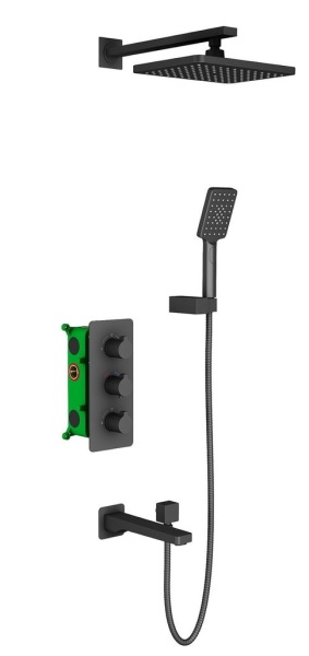 Душевая система скрытого монтажа, с термостатом с квадратной лейкой в стиле модерн