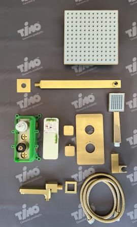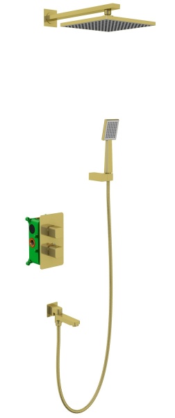 Душевая система встроенная с термостатом двухрычажный, Petruma, (золотой матовый), излив плоский, кв