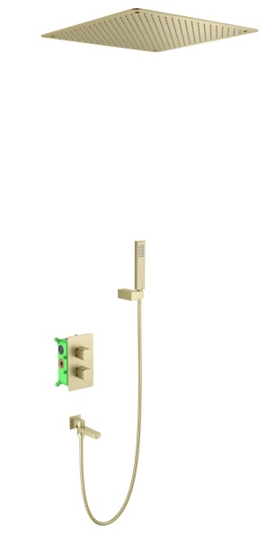 Душевая система встроенная с термостатом двухрычажный, Petruma, (золотой матовый), излив плоский, пр