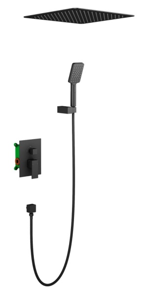 Душевая система встроенная однорычажная (чёрный) без излива, скругленная лейка TIMO