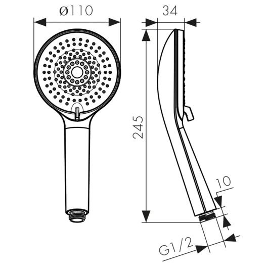 Душевая лейка KAISER 4-х режимная, Ø110х245мм, в коробке /Пластик/Хром