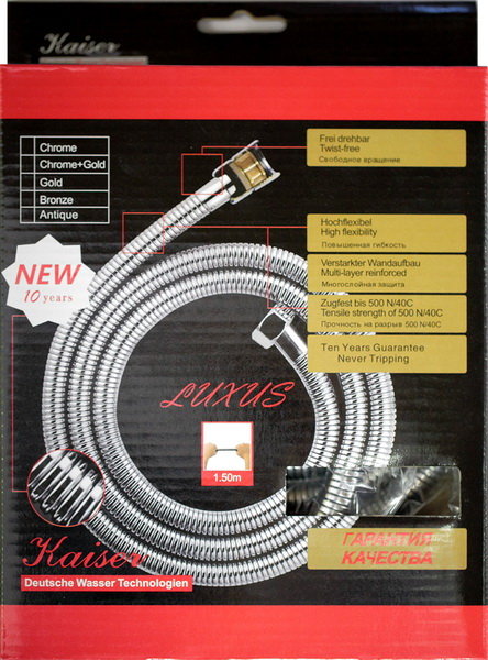 Душевой шланг усиленный 1,5 м и/и золотой LUXUS (чёрная упак.)