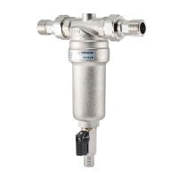 Для обеспечения правильной работы промывные фильтры устанавливаются в горизонтальном положении сливным штуцером вниз. Промывные фильтры PROFACTOR® поставляются в двух вариантах комплектации по типу колб: прозрачная колба из поликарбоната – рекомендуется для холодной воды; из никелированной латуни – для горячей воды.