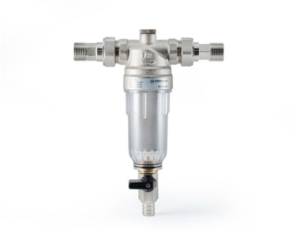 Для обеспечения правильной работы промывные фильтры устанавливаются в горизонтальном положении сливным штуцером вниз. Промывные фильтры PROFACTOR® поставляются в двух вариантах комплектации по типу колб: прозрачная колба из поликарбоната – рекомендуется для холодной воды; из никелированной латуни – для горячей воды.