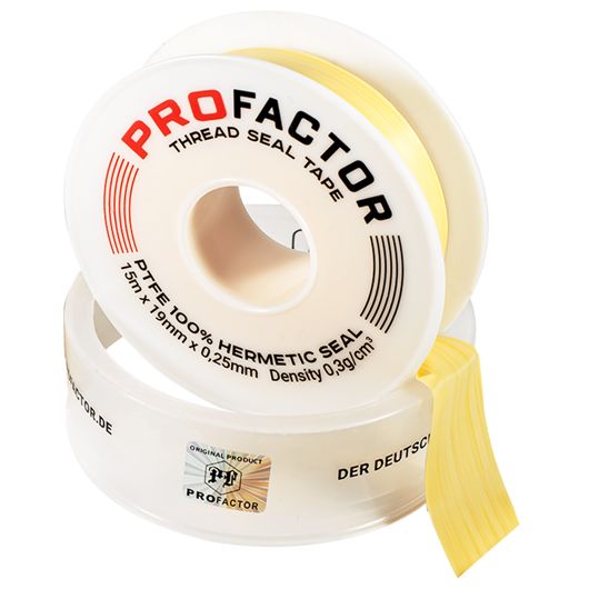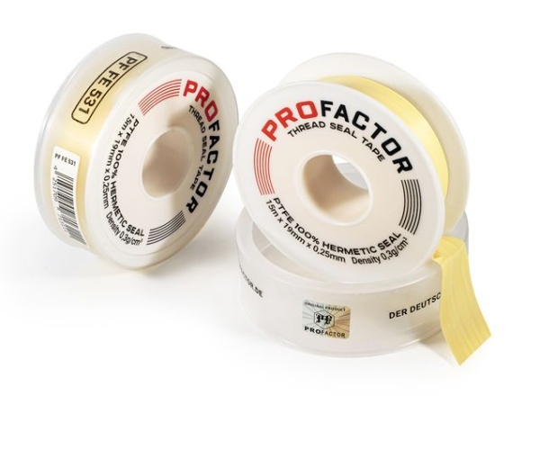 ФУМ лента PROFACTOR® PROFESSIONAL применяется для уплотнения и надёжной герметизации резьбовых соединений при монтаже любых трубопроводных систем, работающих при номинальном давлении 16 бар и температурном диапазоне от –60°С до +200°С.