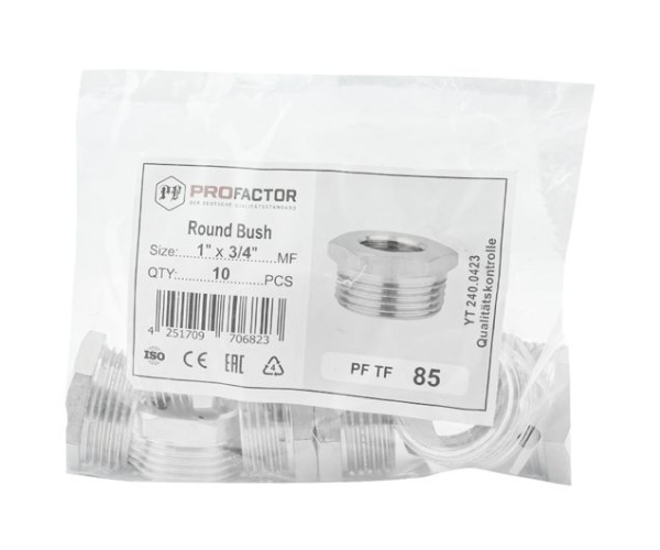 Фитинги резьбовые латунные никелированные PROFACTOR® предназначены для создания разъёмных соединений (в том числе быстроразъемных) при монтаже трубопроводных систем всех типов (систем водоснабжения, отопления, сжатого воздуха и др.).