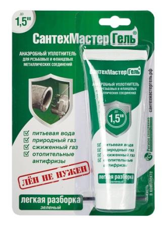 СантехМастер Гель Зеленый 60 г – это резьбовой герметик для металических соединений, созданный для легкого демонтажа соединений, которые располагаются в тяжело доступных местах, где невозможно использовать иные уплотнительные материалы. Он разработан для быстрой и качественной герметизации металлических фланцевых и резьбовых соединений.