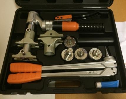 Описание Комплект гидравлического универсального аксиального пресс инструмента для труб из сшитого полиэтилена (16,20,25 мм), FT-1240B