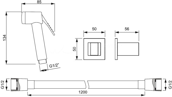 Гигиенический набор (лейка, шланг, кронштейн) круглая, латунь (чёрный)