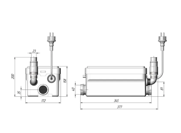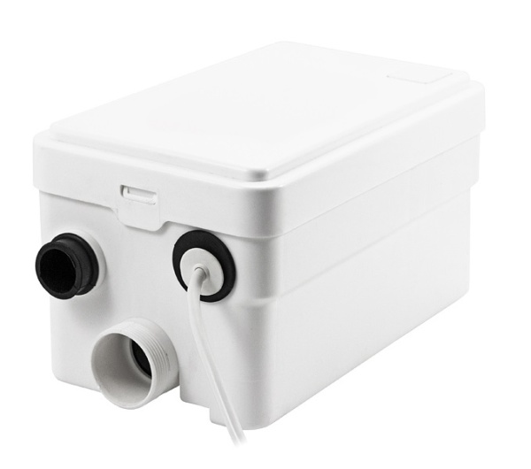 Бытовая канализационная насосная станция SANIVORT 255 M (напор 9 метров) — позволяет удалять сточные воды от раковин и душевых кабин, находящихся ниже уровня коллектора канализационной системы, а также в удаленных местах, где невозможно или нецелесообразно организовать канализацию самотеком. На верхней крышке станции имеется вентиляционное отверстие.