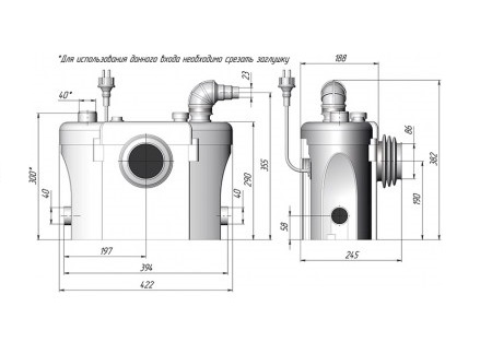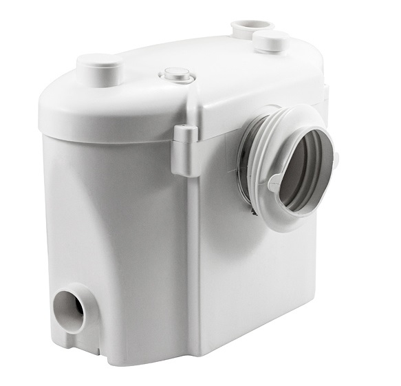 Вход от туалета (DN 100), 2 входа (DN 40) от раковин и т. д., напорный патрубок (DN 40).