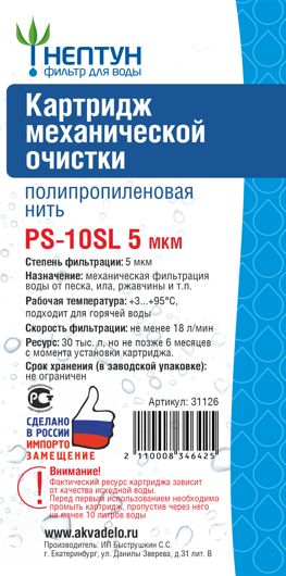 Картридж 10SL нитяной, 5 мкм PS-10SL (63 мм)