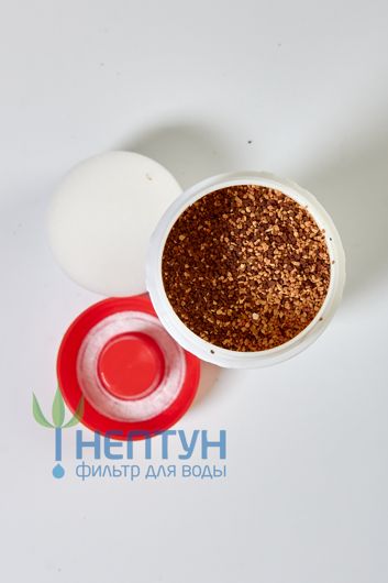 Картриджи «Нептун» удаляют железо, марганец, стронций, ТЦМ, алюминий, нефтепродукты, фенол и фтор, улучшая химический состав и вкус воды после механической фильтрации. Конструкция включает фильтрующую загрузку, нижнюю крышку с фильтроэлементом и пыж верхней крышки, на которых оседают вредные примеси.