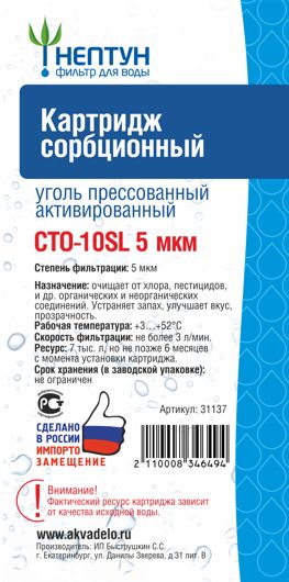 Картридж Нептун CTO-10SL: эффективное решение для сорбционной очистки воды