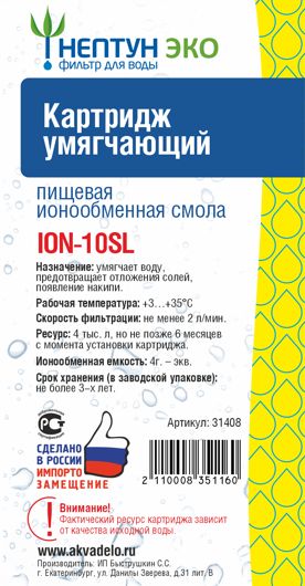 Картридж 10SL умягчающий с ионообменной смолой ION-10SL