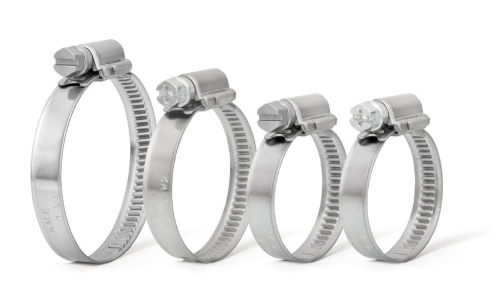 Хомуты обжимные червячного типа выпускаются с шириной ленты 9 мм, головка винта под крестовидную отвертку и ключ 7 мм, зажимаемые диаметры от 10 мм до 160 мм. Хомут выпускается из нержавеющей стали различных классов и отличается хорошей стабильностью характеристик.