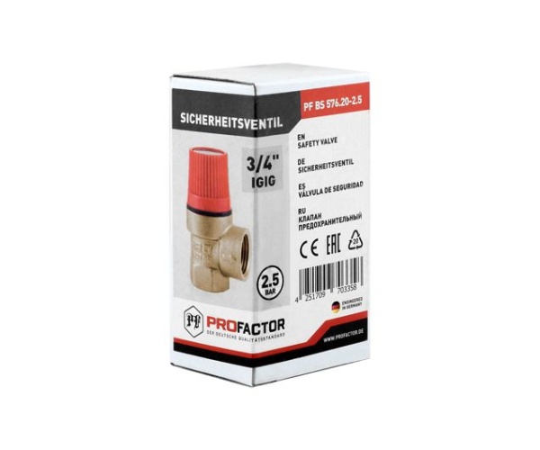 Предохранительный клапан PROFACTOR® PF BS 576 предназначен для автоматической защиты от превышения максимально допустимого рабочего давления в системах отопления, на паровых или водонагревательных системах, трубопроводах, гидравлических установках.
