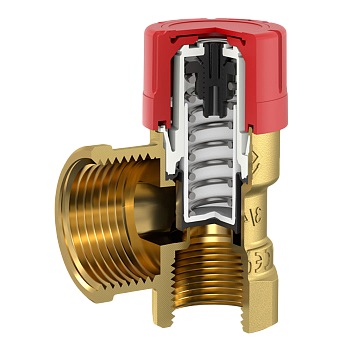 Предохранительный сбросной мембранный клапан с фиксированным порогом срабатывания. Корпус из латуни. Пластмассовый колпачок для ручного сброса. Никель-хромированная стальная пружина. Герметизация от внешней среды - Мембрана. Максимальная рабочая температура 95°C. Угловое подключение.