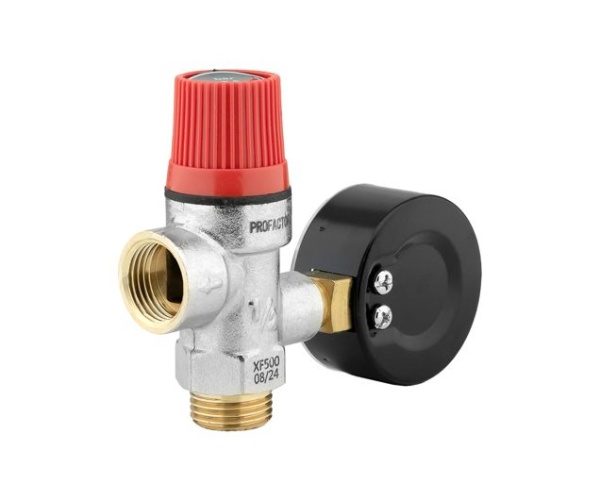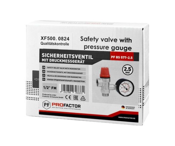 Предохранительный клапан PROFACTOR® PF BS 577 с манометром предназначен для автоматической защиты от превышения максимально допустимого рабочего давления в системах отопления, на паровых или водонагревательных системах, трубопро-водах, гидравлических установках.