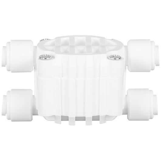 Автоматический запорный клапан для систем обратного осмоса. Предназначен для автоматического закрытия подачи воды к фильтру после заполнения накопительного бака. Защищает мембрану от холостого хода воды.