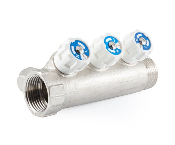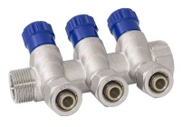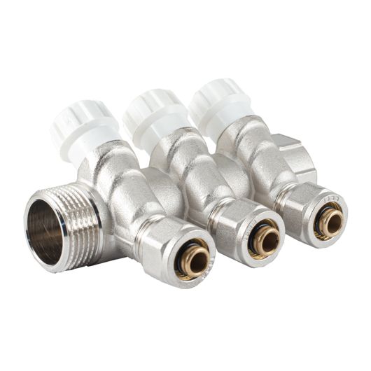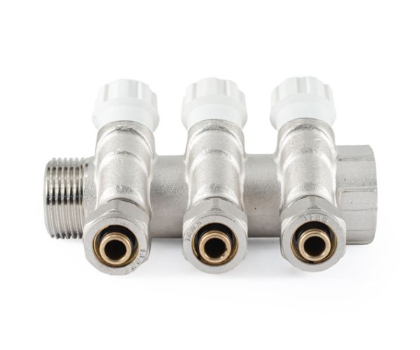 Коллектор с вентилями и цангами г/ш 1" х 16 (3 вых.)