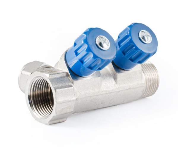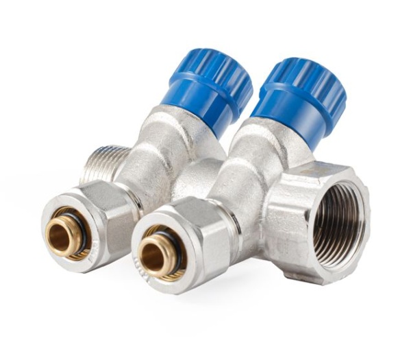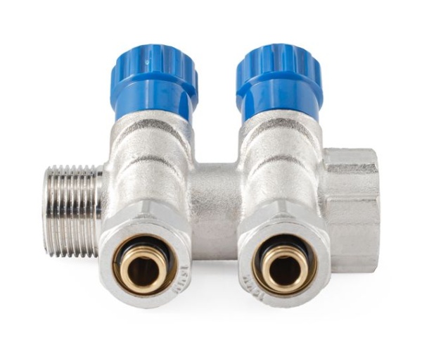 Коллектор с вентилями и цангами г/ш 3/4" х 16 (2 вых.)