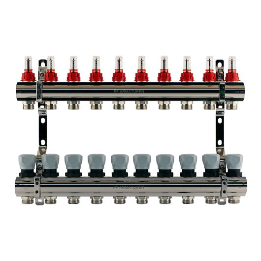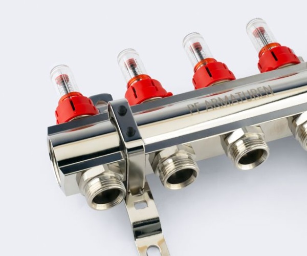 Коллекторная группа PROFACTOR® PF MB 800 используется в системах водоснабжения, радиаторного или напольного отопления для распределения и регулирования рабочей среды в системе.