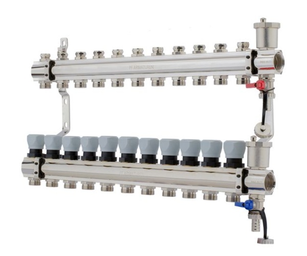 Коллекторный блок с рег. клапанами в сборе 1" х 3/4"ш (11 вых.)