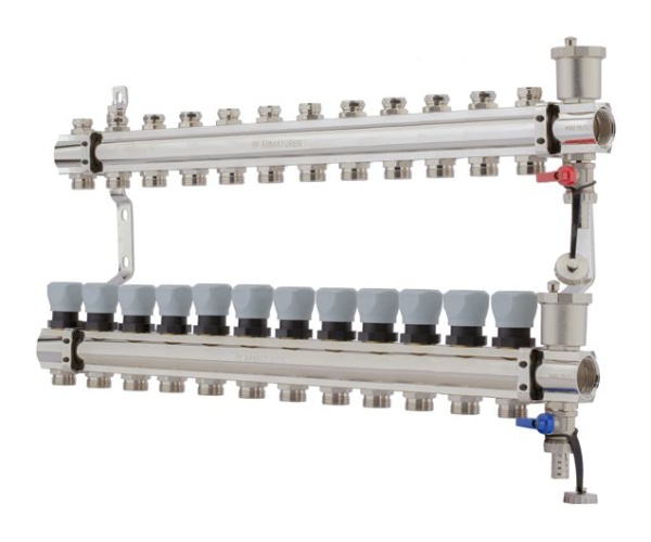 Коллекторный блок с рег. клапанами в сборе 1" х 3/4"ш (12 вых.)