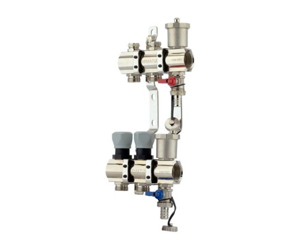 Контуры системы отопления или теплого пола подключаются к коллектору, что позволяет осуществлять регулировку и контроль потока теплоносителя индивидуально в каждом циркуляционном контуре.