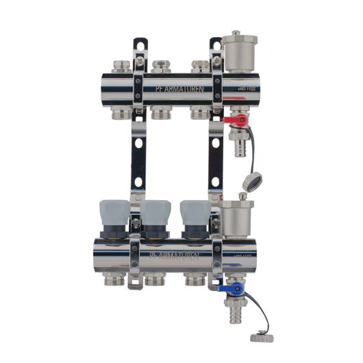 Коллекторная группа PROFACTOR® PF MB 804 используется в системах водоснабжения, радиаторного или напольного отопления для распределения и регулирования рабочей среды в системе.
